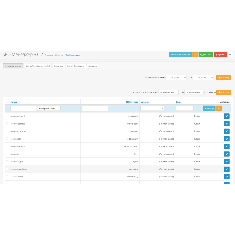 - Редактирование всех существующих SEO URL. Если вам нужно внести изменения в уже созданные ссылки, вы можете легко сделать это с помощью этого модуля.