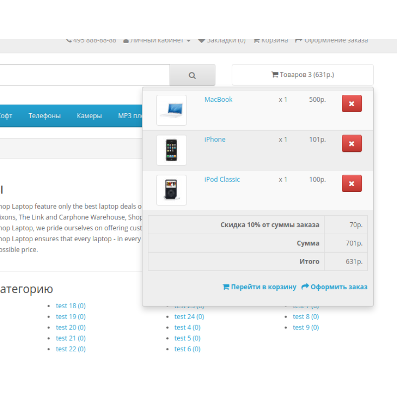 Модуль Скидки в корзине от суммы и количества для Opencart