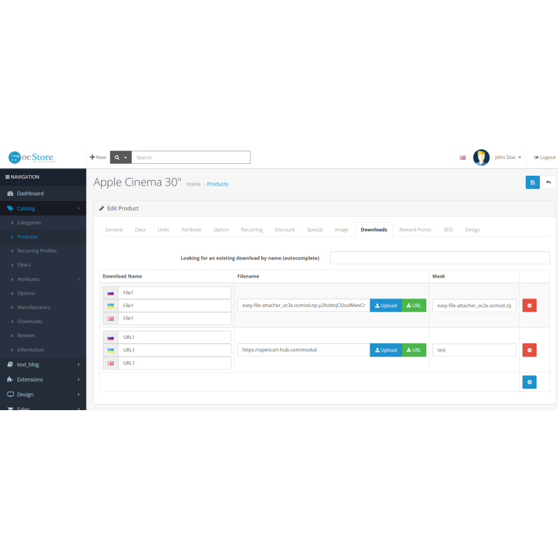 Легке прикріплення файлів у товарі OpenCart