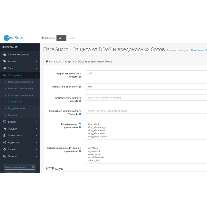 FlareGuard: DDoS-захист та антибот для інтернет-магазину на OpenCart 3
