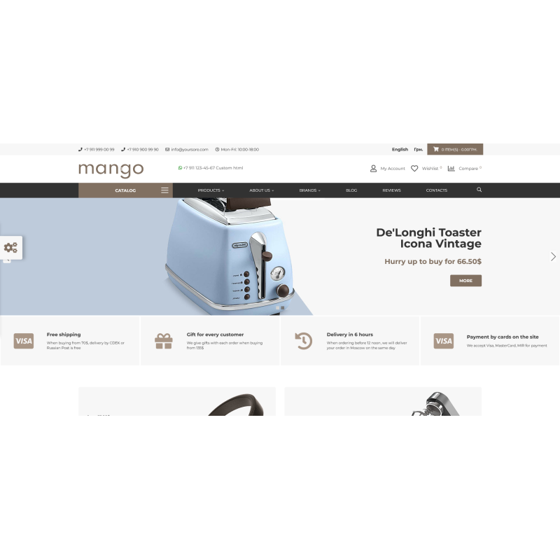 Mango – OpenCart 3, ocStore 3 + Quickstart үшін әмбебап жауап беретін үлгі