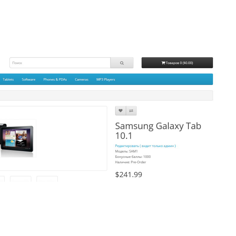 - Сторінка редагування товару в адмінки "Каталог> Товари> Редагування";
