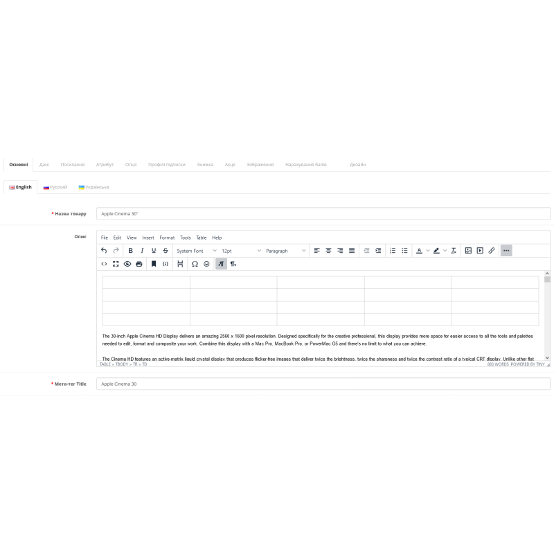 Opencart үшін TinyMCE 5 кеңейтілген редактор модулі