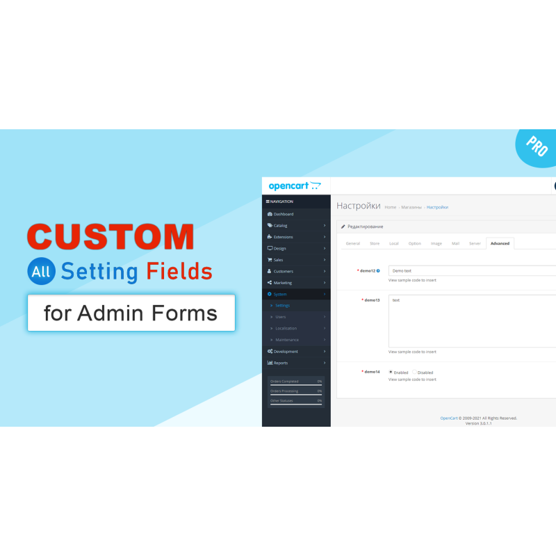Модуль Власні поля в адмінці для Opencart