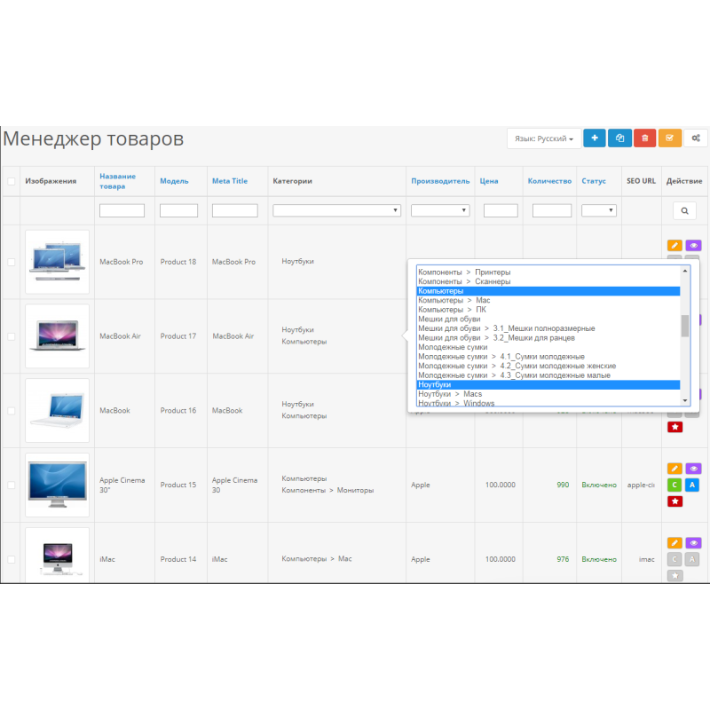 Модуль Менеджер товарів 3.0 - Зручний інструмент для управління товарами для Opencart