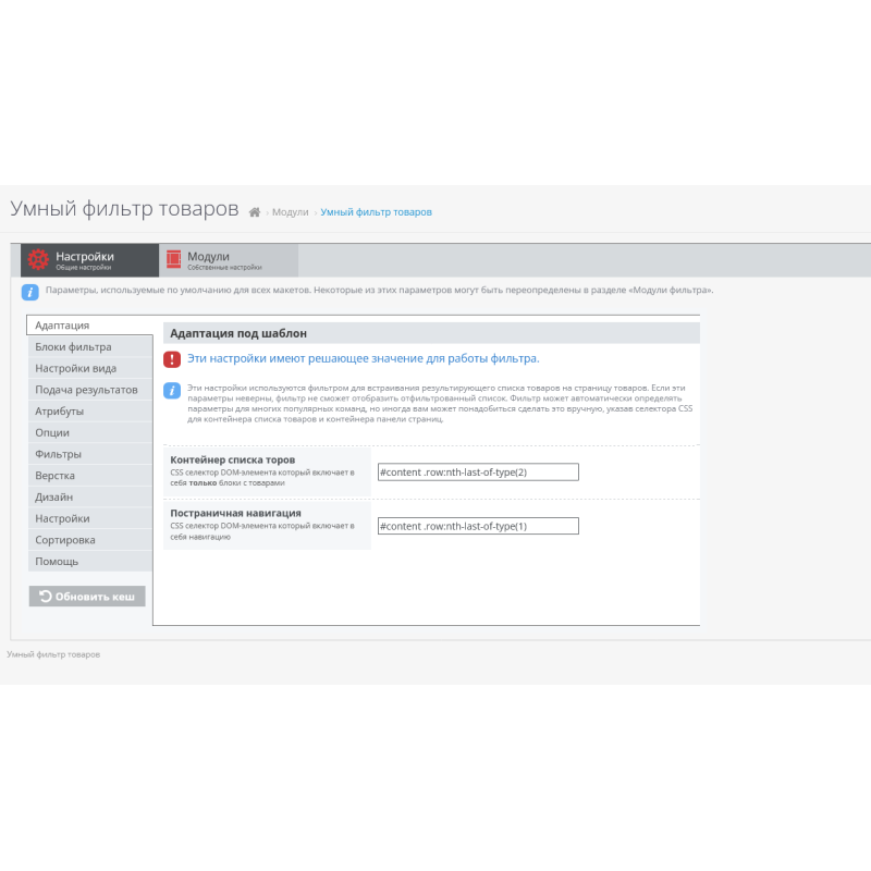 O aplicativo "Smart Product Filter" está incluído no conjunto de módulos obrigatórios para o CMS Opencart.