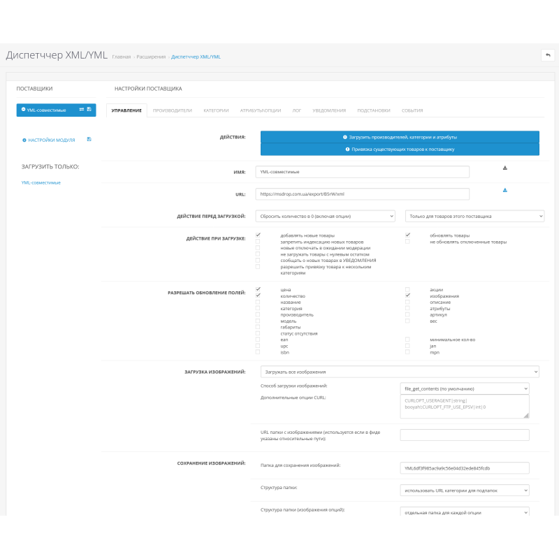 Модуль Диспетчер XML/YML для Opencart